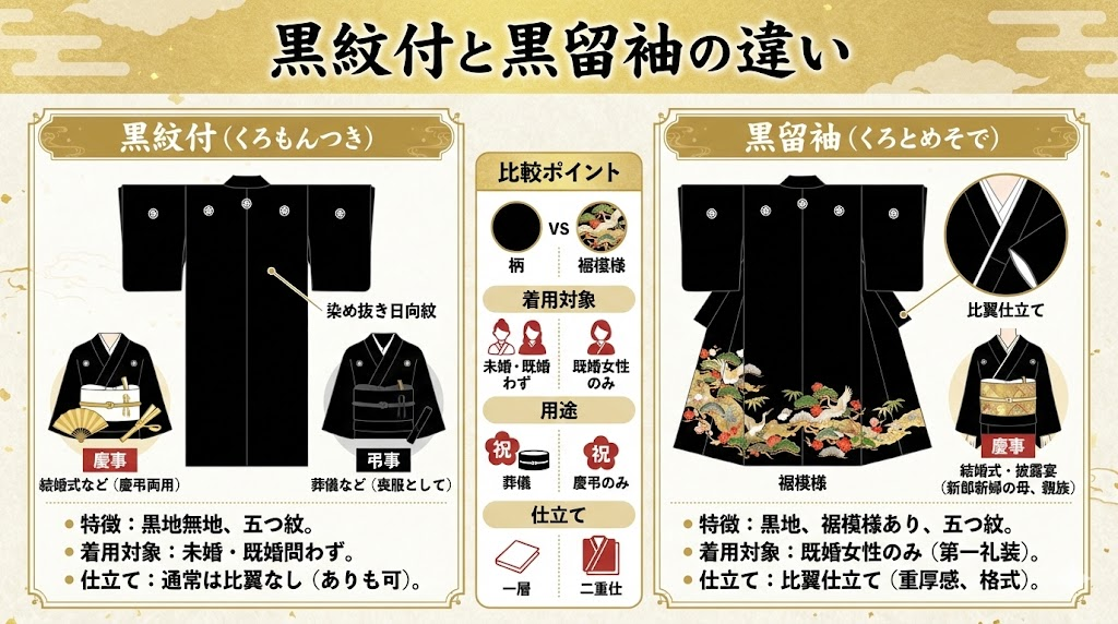 - 黒紋付と黒留袖、喪服の違いとそれぞれの用途