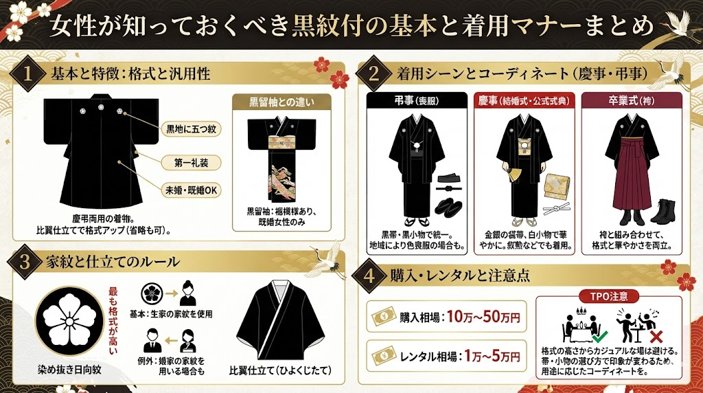 女性が知っておくべき黒紋付の基本と着用マナーまとめ