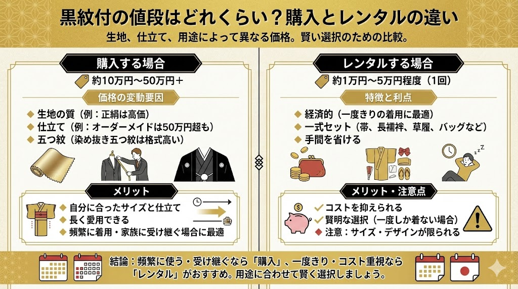 黒紋付の値段はどれくらい?購入とレンタルの違い