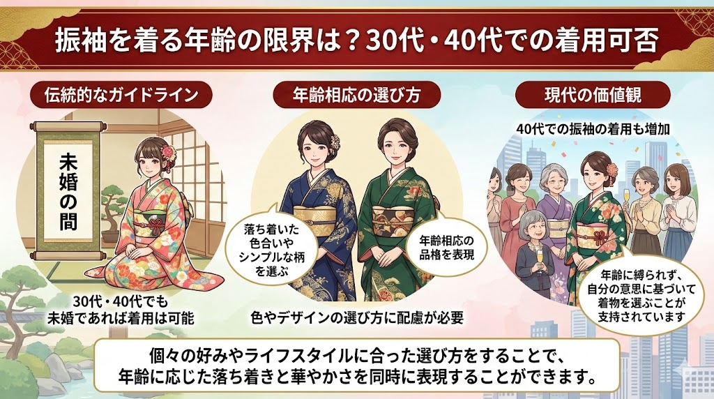 30代で振袖を着ることに関しては、年齢と文化的な観点から議論が多いです。振袖は未婚女性のための正装とされていますが、時代の変化に伴い、その着用についても柔軟な考え方が広がっています。