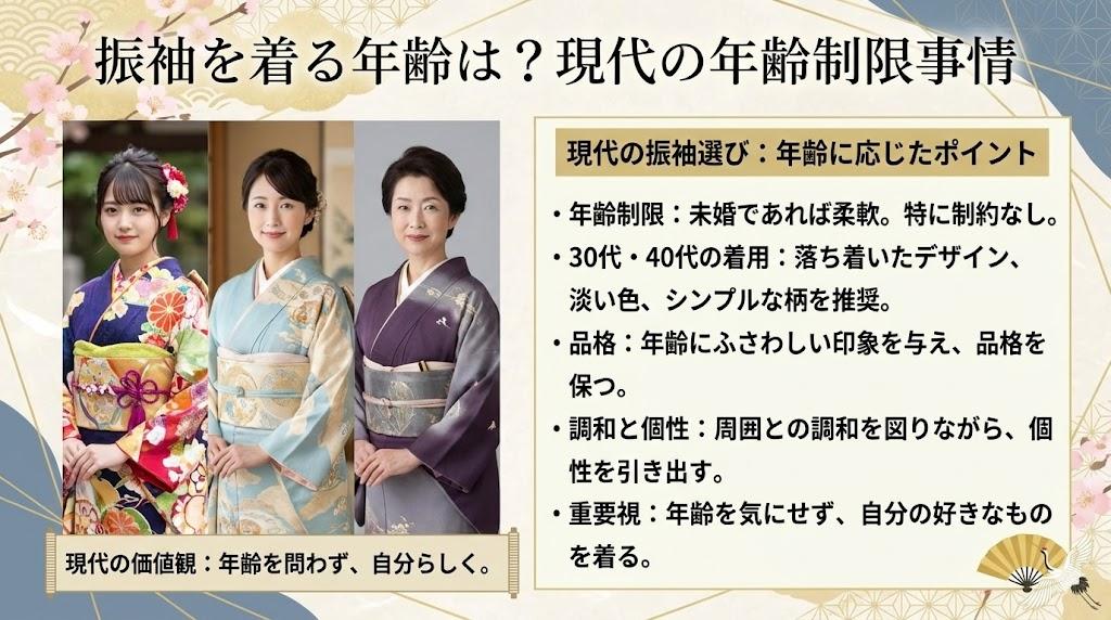 振袖には年齢制限があると言われることもありますが、実際には必ずしも明確な制限があるわけではありません。未婚であれば何歳でも着用可能ですが、年齢に応じたスタイルの選び方が求められます。特に30代以降は、デザインや色合いに配慮し、上品で落ち着いた印象を与えることが大切です。