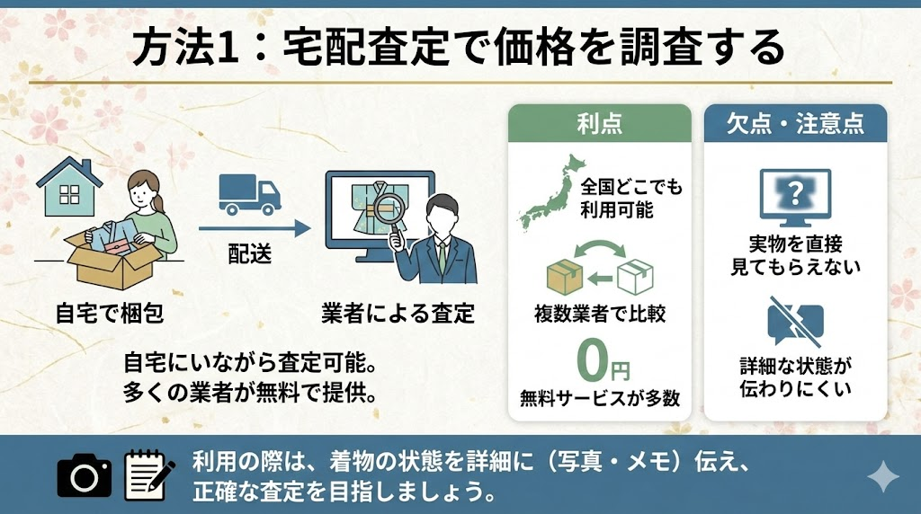 宅配査定を利用する際は、着物の状態を詳細に伝え、できるだけ正確な査定を受けるように心がけましょう。