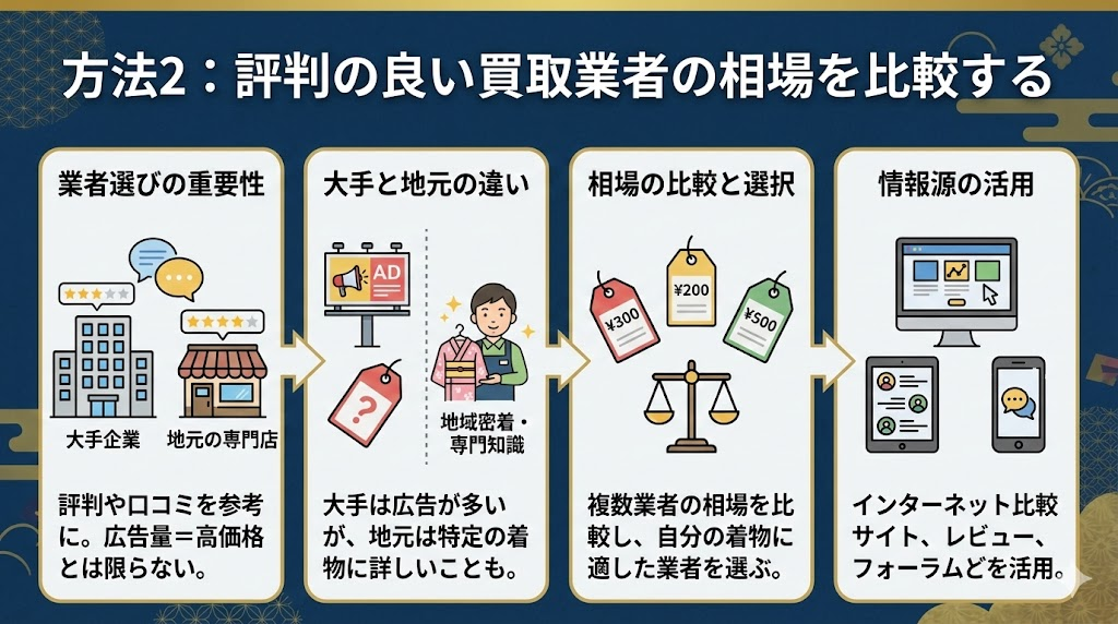 ここでは、着物買取の相場を知るための具体的な方法を3つ紹介します。